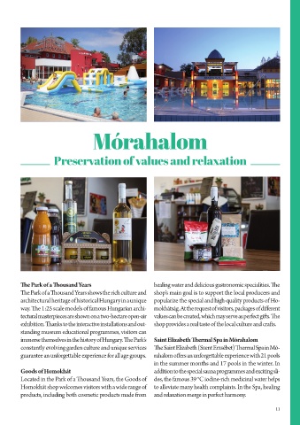 immerse themselves in the history of Hungary. Th e Park’s Saint Elizabeth Thermal Spa in Mórahalom