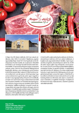 A Major-Hús Kft. Makón található, 2021-ben alakult vál- A Hód-Hús Kft. makói székhellyel rendelkező, de Hódme-