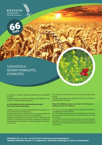 Főtevékenységünk a szántóföldi növénytermesztés, értékesítés. A szö- Our main activity is field crop production and sales. The cooperative pro-