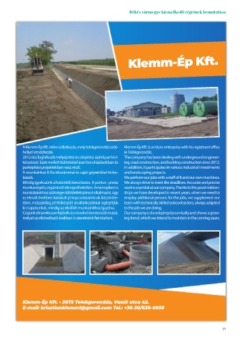 A Klemm-Ép Kft. mikro vállalkozás, mely telekgerendási szék- Klemm-Ép Kft. is a micro-enterprise with its registered offi ce