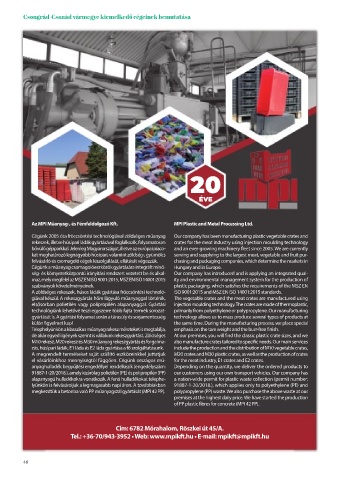 A zöldséges rekeszek, húsos ládák gyártása fröccsöntési technoló- ISO 9001:2015 and MSZ EN ISO 14001:2015 standards.