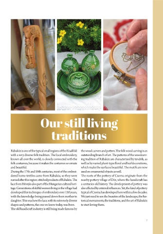 with a very diverse folk tradition. The local embroidery, outstanding branch of art. Th e patterns of the woodcarv-