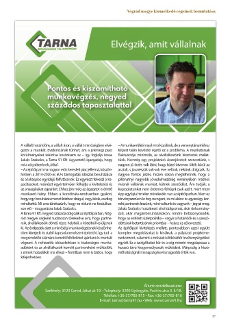 A Tarna 91 Kft. negyed százada dolgozik az építőiparban, Nóg- zati, akár magánberuházásokon, rendre bebizonyosodik,
