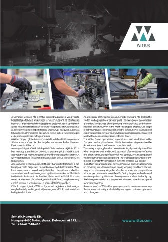 A Sematic Hungária Kft. a Wittur csoport tagjaként a világ vezető As a member of the Wittur Group, Sematic Hungária Kft. (Ltd.) is the