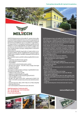 A MILTECH Haditechnikai és Informatikai Zrt. radarok, kommuniká- MILTECH Haditechnikai és Informatikai Zrt. (Military Technology and