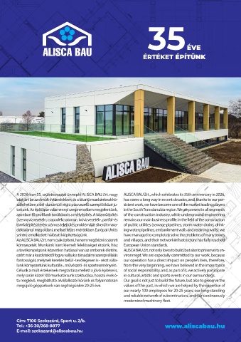 A 2026-ban 35. születésnapját ünneplő ALISCA BAU Zrt. nagy ALISCA BAU Zrt., which celebrates its 35th anniversary in 2026,
