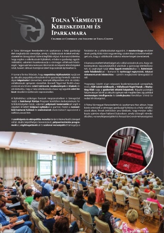 tellehetőségeket kínál, valamint pályázati tanácsadással segíti a A Tolna Vármegyei Kereskedelmi és Iparkamara hisz abban, hogy